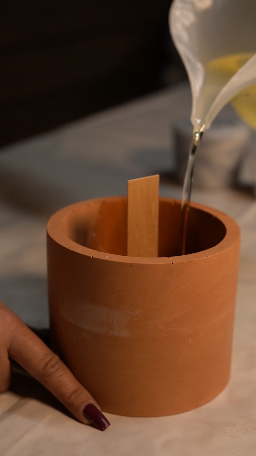 Nos bougies sont coulées à la main, une par une, dans notre atelier.