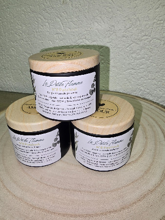 Bougie artisanale , coulée à la main avec passion dans notre atelier. Composée d'un mélange 100 % végétal de cire de colza et de soja , elle offre une combustion propre, sans fumée toxique, et respecte votre environnement. Caractéristiques : Cire : 100 % végétale – colza & soja (sans OGM, sans paraffine) Fragrances : Aux choix parmi notre sélection ( sans CMR ni phtalates) Durée de combustion : Environ 16-18  heures Mèche : en bois merisier ou cerisier  Contenant : Récipient réutilisable ou recyclable Fabrication : Delémont Jura  Contenant réutilisable ou rechargeable Poids net : 150gr